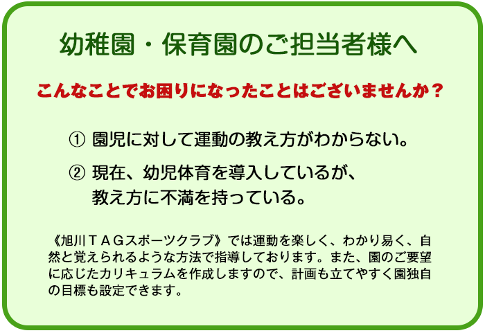 日本の子供たちの体力低下が叫ばれて久しく、特に北海道では冬季の運動不足も重なり肥満も多く見受けられ、幼児期からの運動習慣を身につけておくことが、重要な時代となりました。