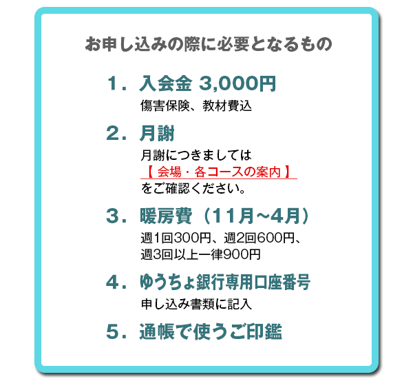 - 新規ご入会の方は、初回の支払いは現金とさせていただきます。