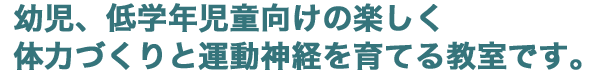人間の基礎となる動き「走る・跳ぶ・投げる・転がる・這う・押す・回る等」の36種類の動きがあると言われており、神経系の発達が著しく発達していく、幼児・児童期の子ども達にその動きを運動器具等(マット、跳び箱、鉄棒、縄跳び、ボール、鬼ごっこ等)を活用しながら養っていきます。